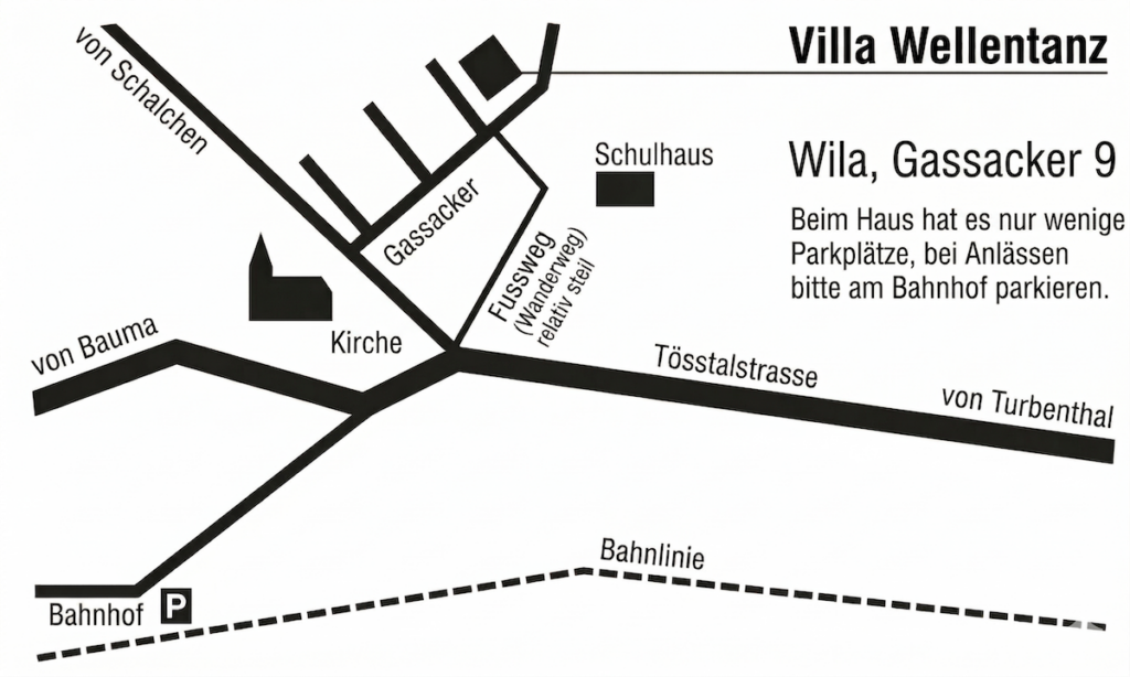 Dann zu Fuss maximal 10 Minuten (siehe Ortsplan Wila:)