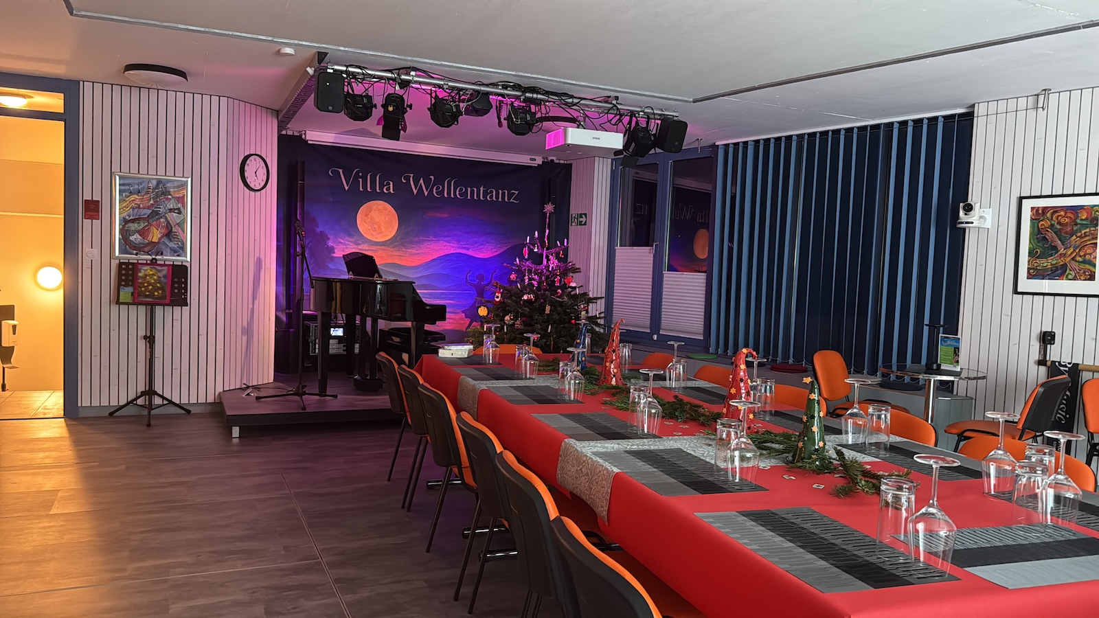 Unseren Mehrzweckraum können Sie für verschiedene Zwecke mieten. Der Saal bieten je nach Nutzung bis zu 40 Personen Platz.